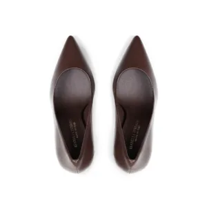 Eleganza senza compromessi: questa décolleté in pelle moka combina una silhouette affusolata con un tacco stiletto da 100 mm che allunga la figura con naturalezza. La tonalità calda e sofisticata della pelle si adatta perfettamente a qualsiasi guardaroba, dal quotidiano alle occasioni speciali. Design minimalista e proporzionato, garantisce comfort e stabilità durante la giornata. Un investimento in stile che non passa mai di moda.